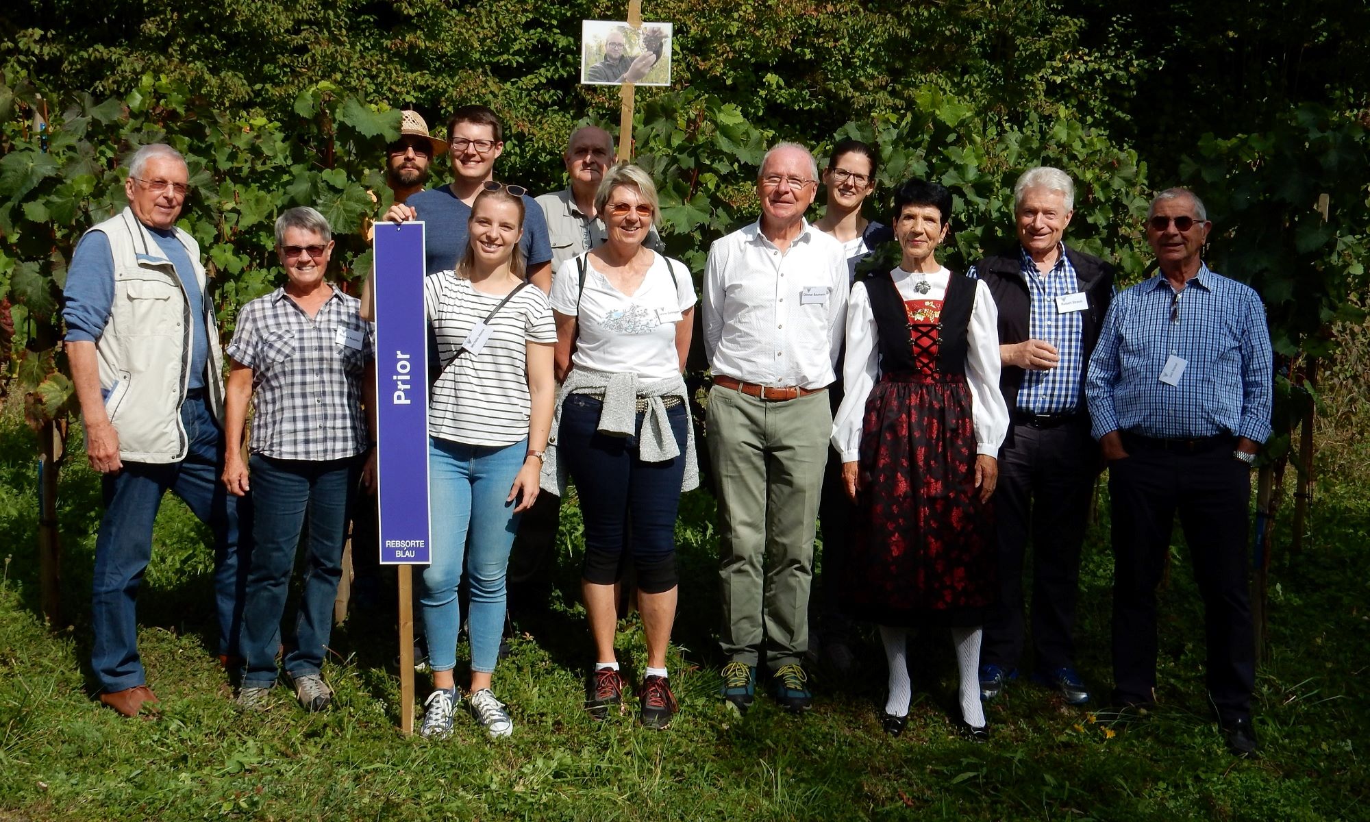 Im Rahmen einer (Vor)Führung haben die Teilnehmenden viel Wissenswertes über Rebsorten erfahren. Im Sortengarten wurde dann bei praktischen Arbeiten wie dem Lesen und Pressen direkt Hand angelegt.